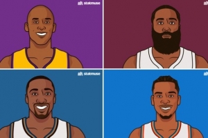 赛后数据媒体StatMuse分享了一个数据:只有4名后卫生涯做到多次40+分且25+罚球。