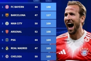 体育资讯4月8日讯 在欧冠淘汰赛首回合,拜仁2-1击败皇马。德转盘点了本赛季目前五大联赛球队在各项赛事总进球榜,其中拜仁遥遥领先,具体如下: