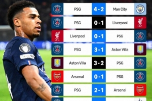 巴黎2025年来12次对阵英超球队,战绩9胜1平2负