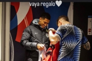 体育资讯3月28日讯 英格兰国脚贝林厄姆更新社交媒体,晒出与巴尔韦德互换球衣的照片。